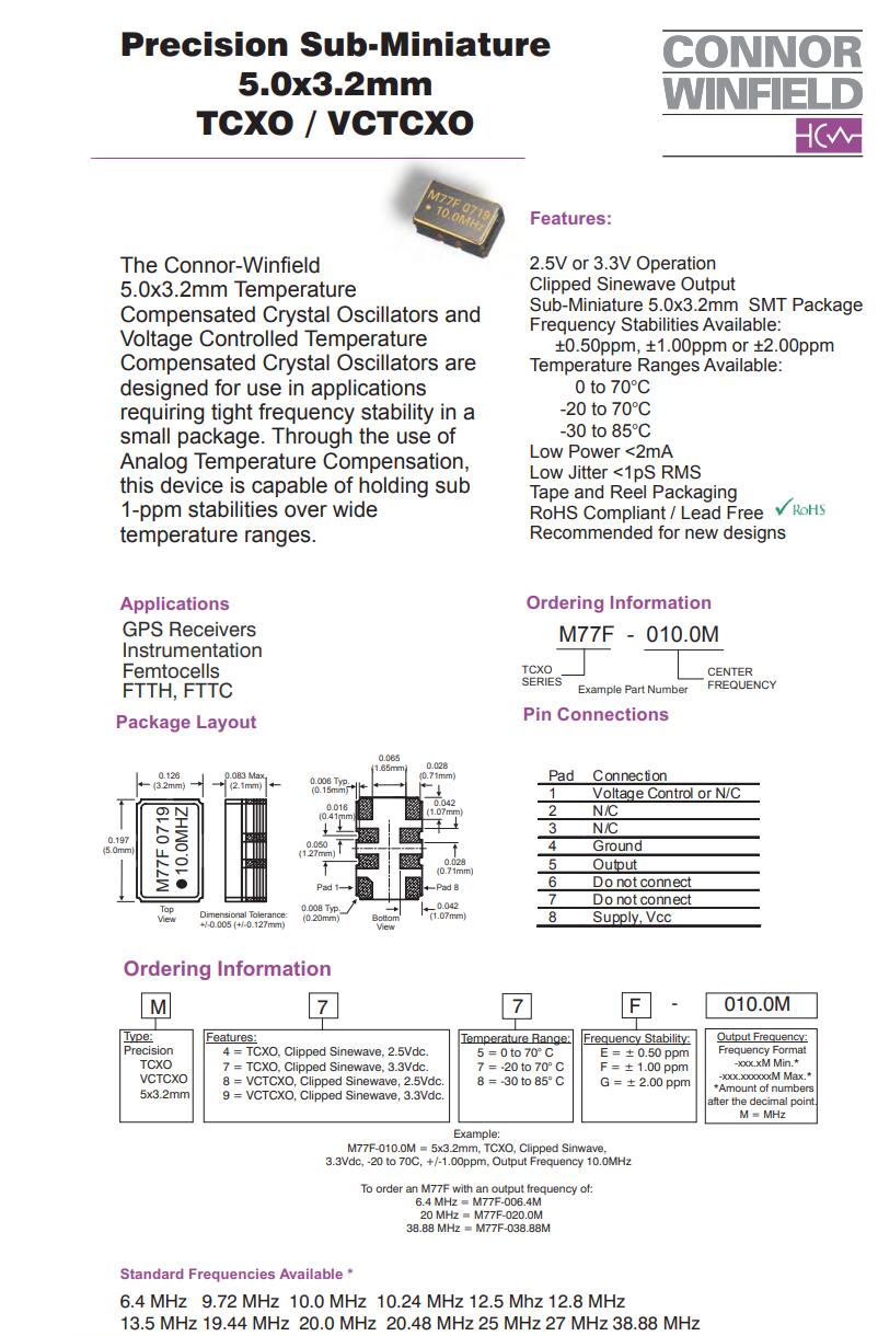 康纳温菲尔德晶振,TX193晶振,5032温补晶振