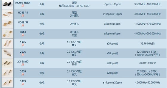 32.768K贴片晶振系列包括1610,2012,3215,4115,4918,7015,8037,插件32.768K晶振系列包括2x6,3x8,3x9,1x5,欢迎广大用户收藏选用.
