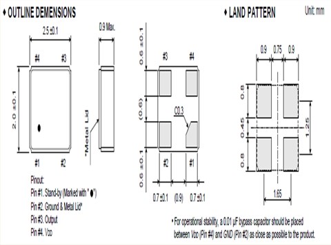 建议将石英晶振输出负载安装在尽可能靠近振荡器的地方(在20 mm范围之间).