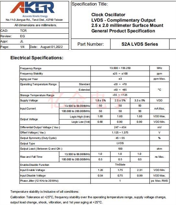 安基高品质晶体,S2A-LVDS差分振荡器,S2A3305-120.000-L-X-R晶振,AKER晶振科技成立于西元1990年,主要从事石英元件产品的研发、包含石英晶体,贴片晶振,耐高温晶振,有源晶振,石英晶体振荡器,压控温补晶振,差分晶振等制造及销售。拥有深厚的研发技术底蕴,为晶体振荡器之专业制造公司。深耕台湾、布局全球。在美国与中国大陆均设有据点,提供客户最及时的服务,朝客户导向目标迈进。
