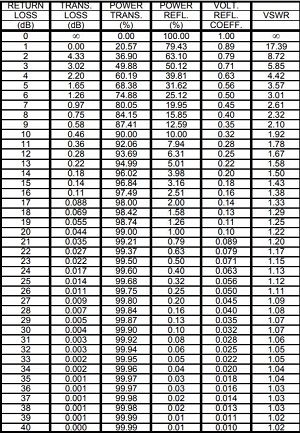 应指定VHF和更高频率的振荡器具有相当好的回波损耗(10dB或更高).10dB的回波损耗意味着反射信号将比入射信号低10dB.常见规格为14dB,即VSWR为1.5.见损失表