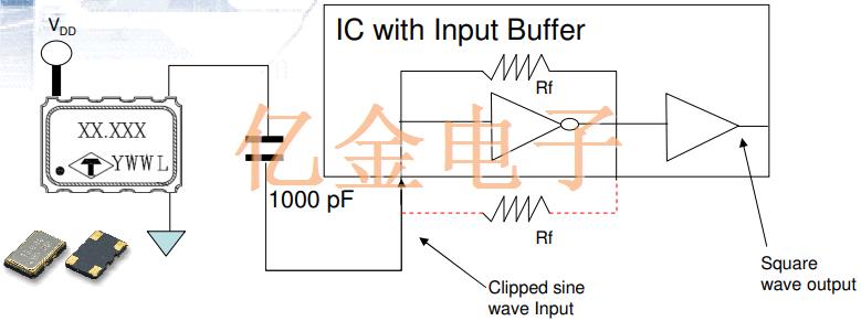 •通常,IC将TCXO温补晶振的输出输入缓冲区.振荡器电路应具有与逆变器并联的RF反馈.